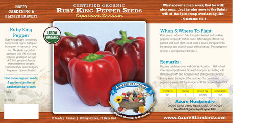 Azure Husbandry Ruby King Pepper Seed, Organic