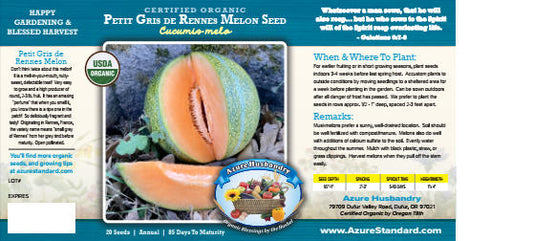 Azure Husbandry Petit Gris de Rennes Melon Seed, Organic