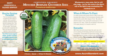 Azure Husbandry Muncher Burpless Cucumber Seed, Organic