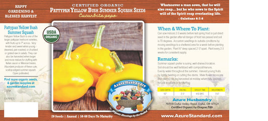 Azure Husbandry Pattypan Yellow Bush Summer Squash Seed, Organic