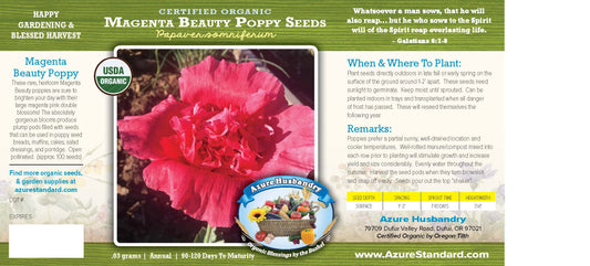 Azure Husbandry Magenta Beauty Poppy Seed, Organic