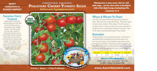 Azure Husbandry Peacevine Cherry Tomato Seed, Organic