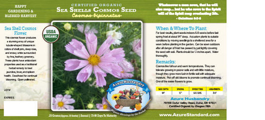 Azure Husbandry Sea Shells Cosmos Seed, Organic