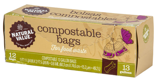 Natural Value Food Waste Bags, 100% Compostable, 13 gallon