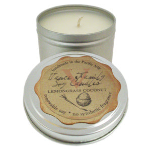 Vance Family Soy Candles Soy Candle, Lemongrass Coconut, in Tin, Non-GMO
