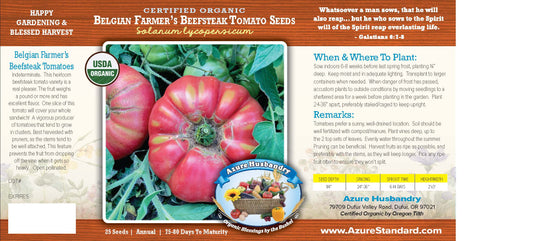 Azure Husbandry Belgian Farmer's Beefsteak Tomato Seed, Organic