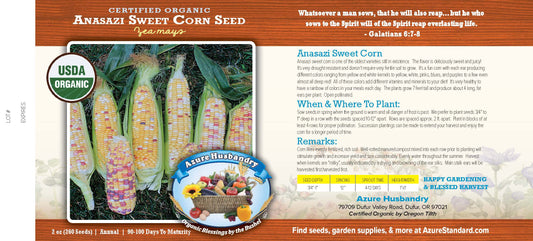 Azure Husbandry Anasazi Sweet Corn Seed, Organic