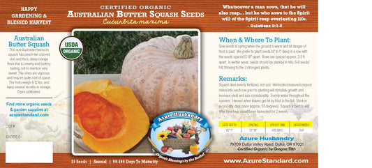 Azure Husbandry Australian Butter Squash Seed, Organic