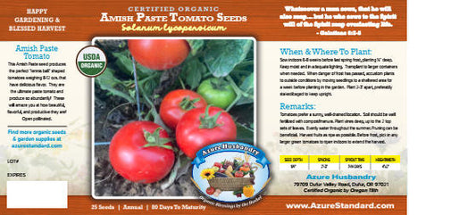 Azure Husbandry Amish Paste Tomato Seed, Organic