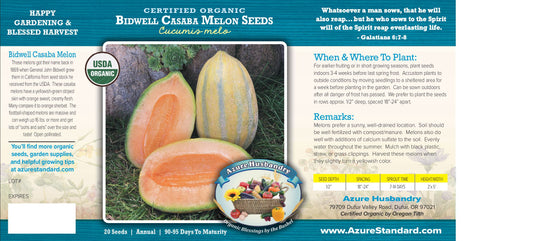 Azure Husbandry Bidwell Casaba Melon Seed, Organic