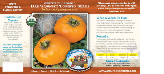 Azure Husbandry Dad's Sunset Tomato Seed, Organic