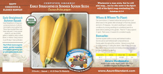Azure Husbandry Early Straightneck Summer Squash Seed, Organic
