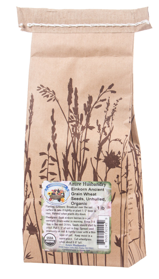 Azure Husbandry Einkorn Ancient Grain Wheat Seeds, Unhulled, Organic