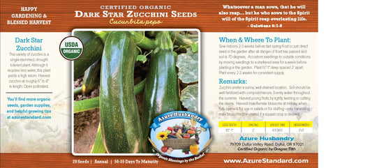 Azure Husbandry Dark Star Zucchini Seed, Organic