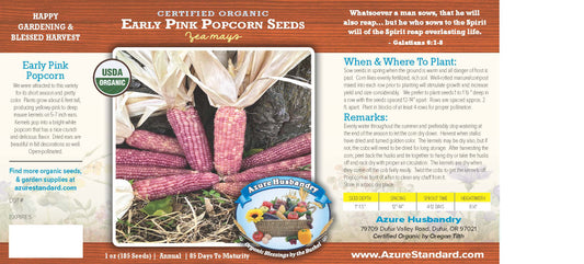 Azure Husbandry Early Pink Popcorn Seed, Organic