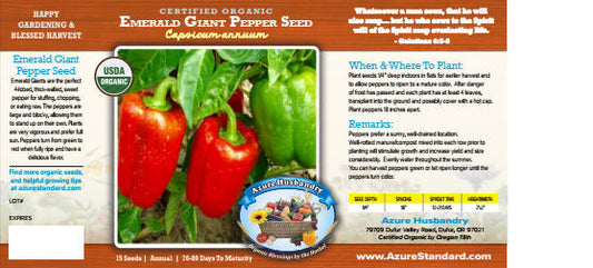Azure Husbandry Emerald Giant Pepper Seed, Organic