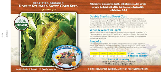 Azure Husbandry Double Standard Sweet Corn Seed, Organic