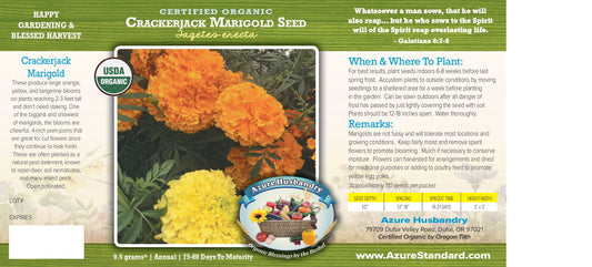 Azure Husbandry Crackerjack Marigold Seed, Organic