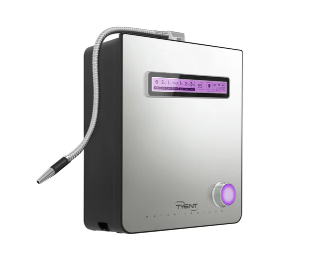 The Tyent Edge 9000T is a 9-plate above-counter water ionizer designed for your kitchen. It's made from high-quality materials including a stainless steel front panel and faucet. The compact design saves you counter space, and the device features a colorful touchscreen for easy operation. Additionally, a JOG Dial provides an extra level of convenience for users.